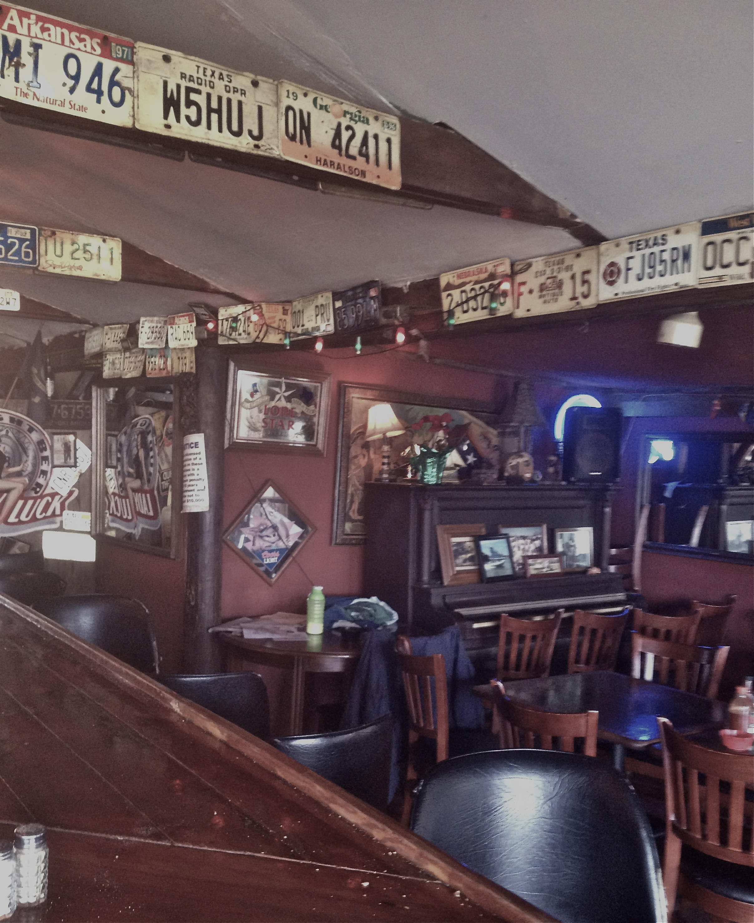 I don’t want to be insulting. They have to know this already. The place looks really bad. It’s a dive. Signs out front tell you three things … no kids are allowed; they only take cash; and you must leave your pets at home. The pet-friendly part wasn’t so hard to fathom and we didn’t bring any children with us, but we had to do a quick accounting of our combined cash. We usually have none, but since we had a couple of twenties on us, we took it as an omen and stepped inside.