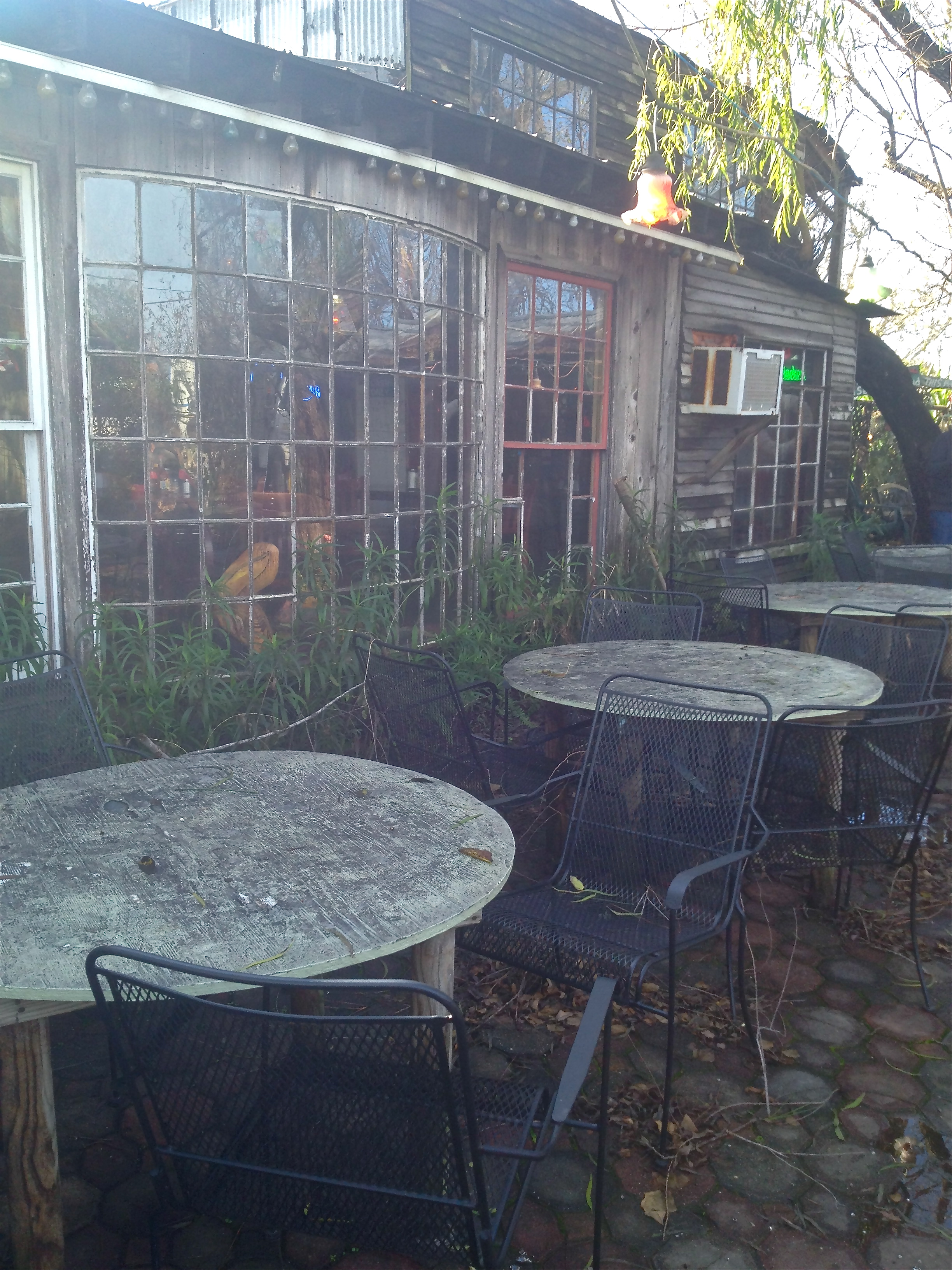 Seafood in a funky, seaside town just doesn’t taste the same on a gloomy day, so we waited for sunshine. Last Thursday, the rain stopped mid-morning. We decided to head to San Leon, Texas for lunch and try a new place — new to us that is. One look at Gilhooley’s Restaurant and you know that you’re not gazing at recent construction.