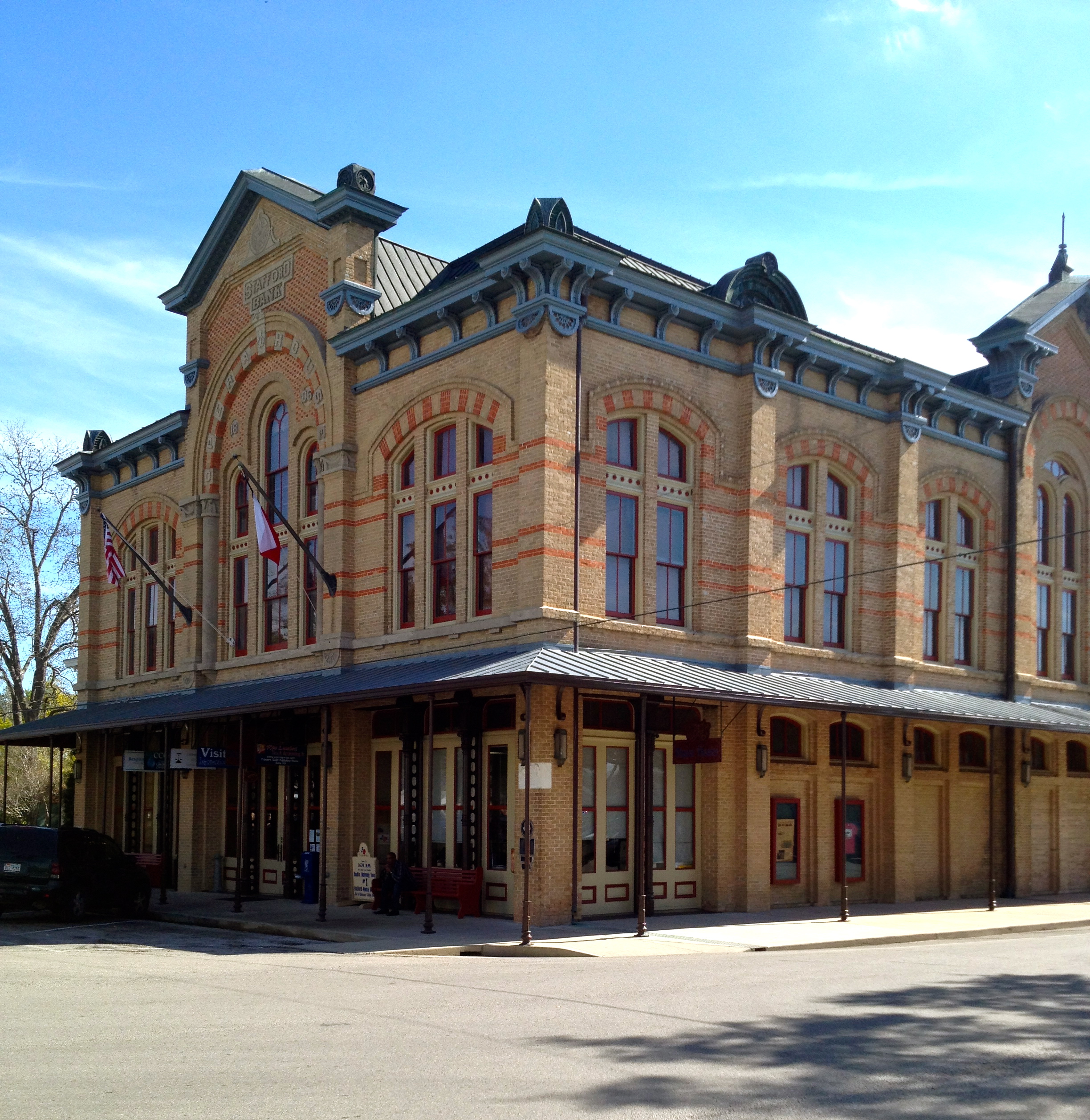 We made the opera house our first stop. The light fixtures alone are good reason to visit. They’re pretty amazing. Today, the place is part office space and part visitor center. The second floor is still for thespians and audiences. It’s a dinner theater now, an elegantly beautiful one. (Call 979-732-5135 for info and tickets)