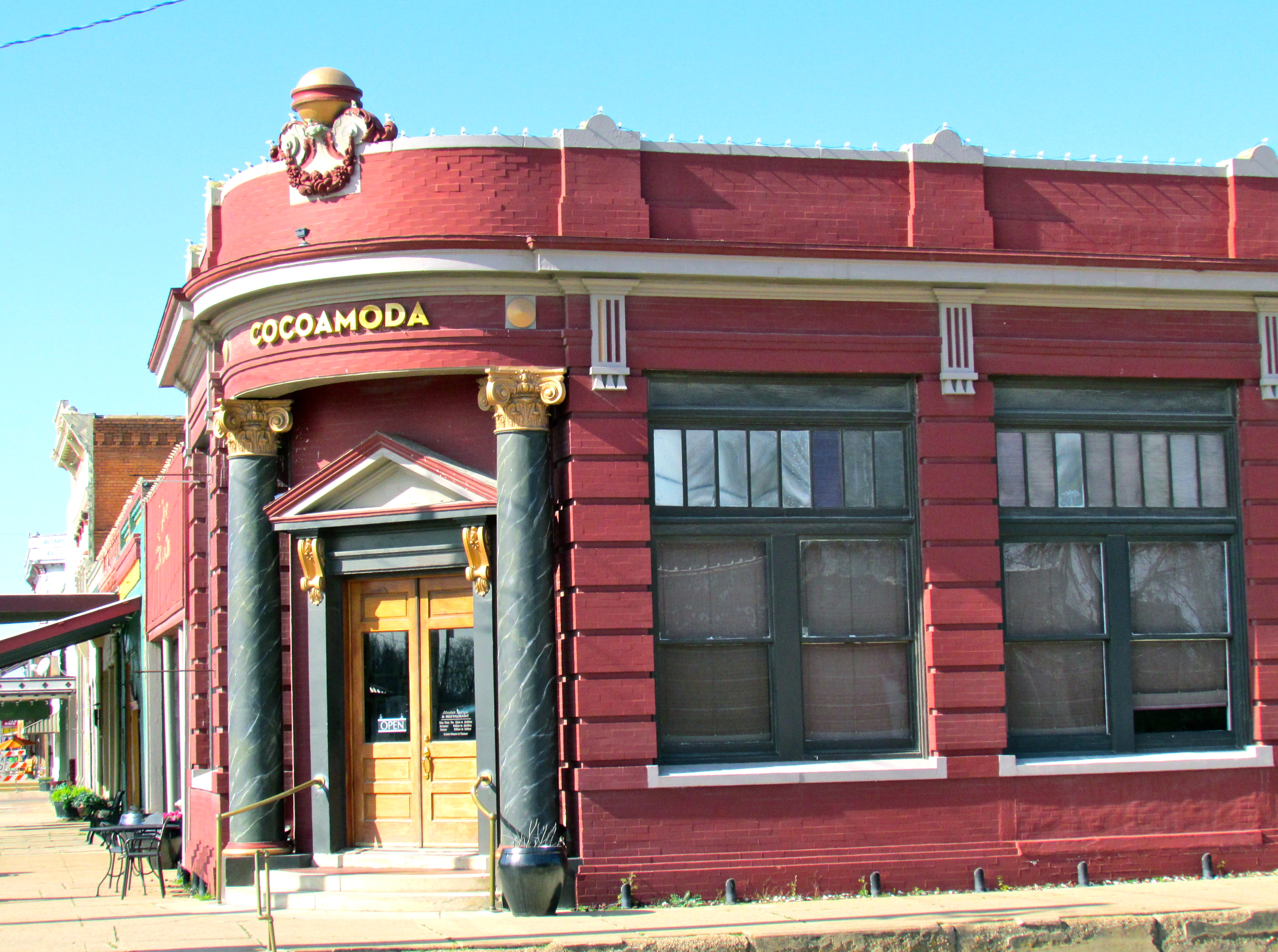 Cocoamoda doesn’t serve daily meals. It’s more a special occasion and weekend-night bistro, but there are always chocolates. If it’s dinner you’re after, call ahead and come dressed for an evening out. You’ll be treated to haute cuisine. The Valentine’s Day menu included an appetizer of escargot encased in a jalapeno broche. The entree was filet de cabillaud a l’orge avec de la sauce abricot. (We consulted Google and discovered the main course was cod.)