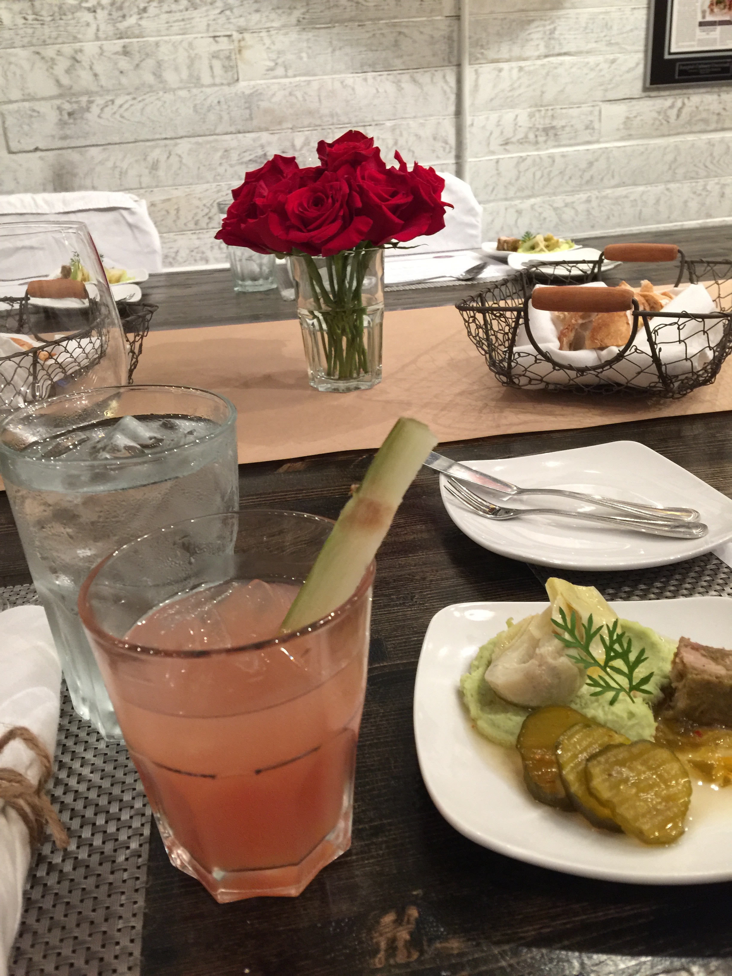 We tried to see how many pralines and beignets we could eat before the night of the cooking class, but somehow we managed to arrive hungry. Good thing too, our appetizers were waiting. The highlight of this plate was the butter bean hummus. How could two southern women, who love butter beans, not think about mashing them with a little onion, garlic, olive oil, and smoked paprika and calling them hummus?