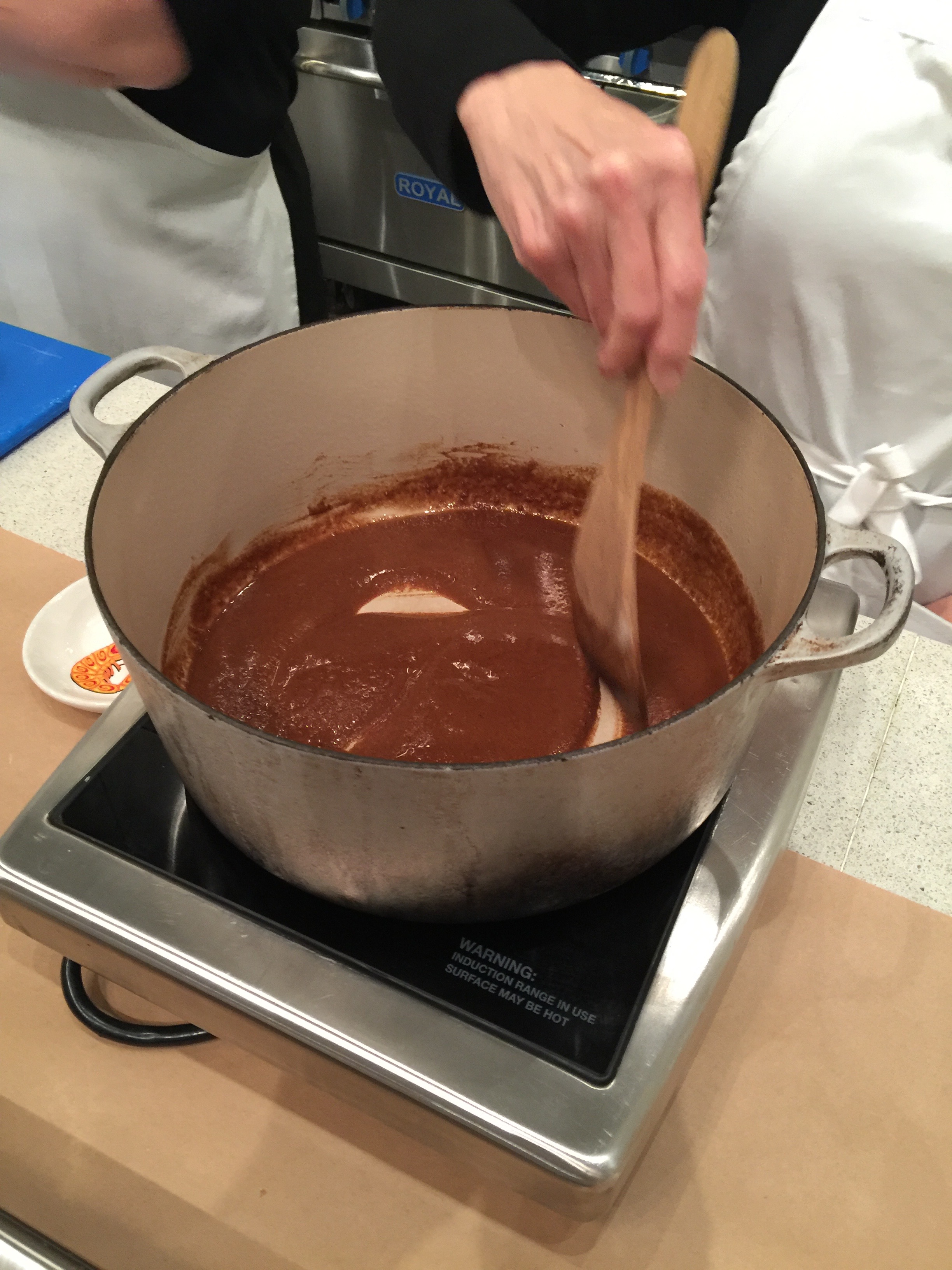 You think if you’ve made one roux, you’ve made them all. Not true! We stirred for about 45 minutes, constantly stirred, until our arms hurt and it looked like rich chocolate. (Do not attempt this alone. You’ll be sorry. It’s a lot of work.)