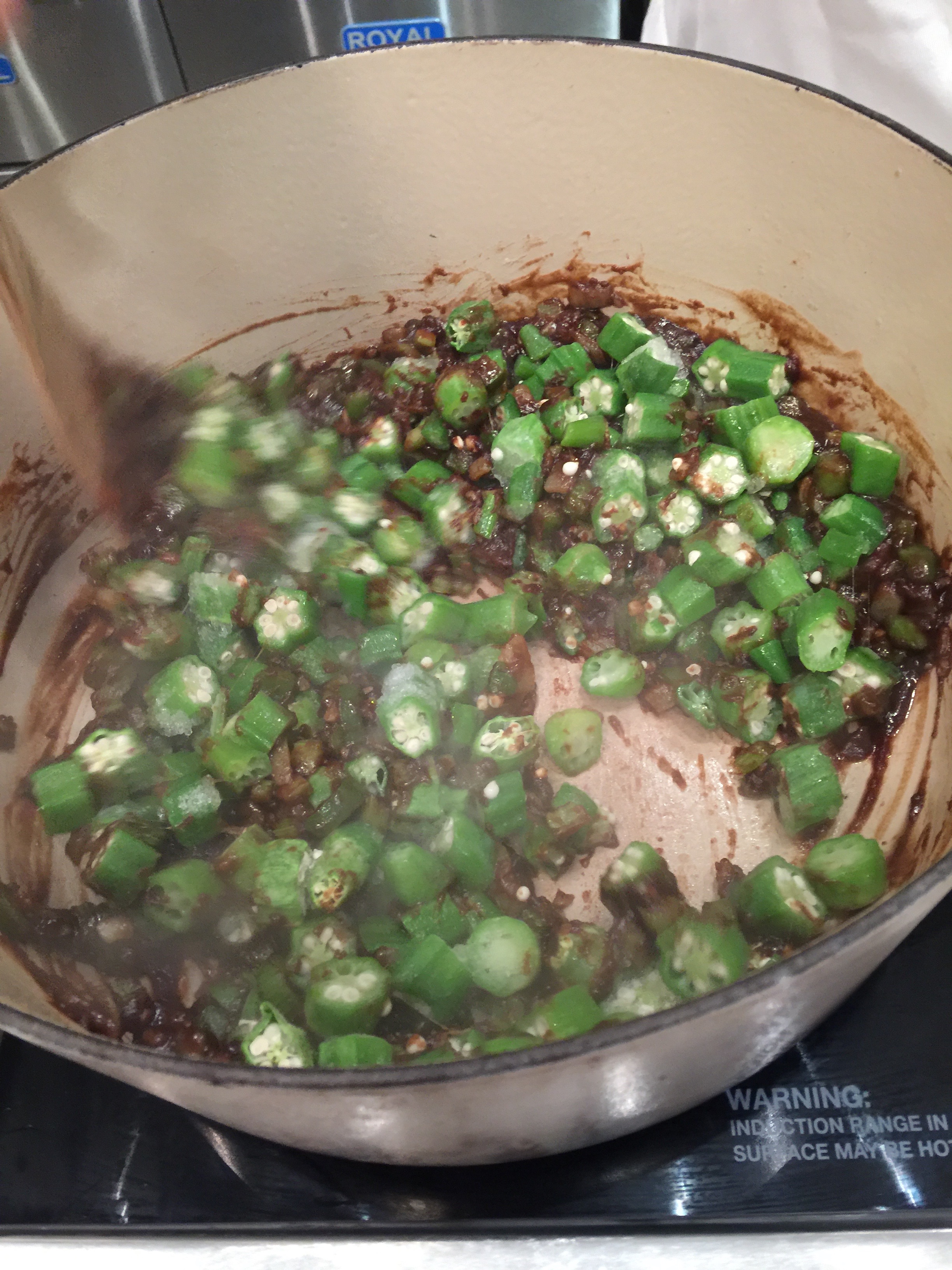 Then bell pepper and okra until it looked like it was forming a big hard chunk that would float to the top when the stock was added.
