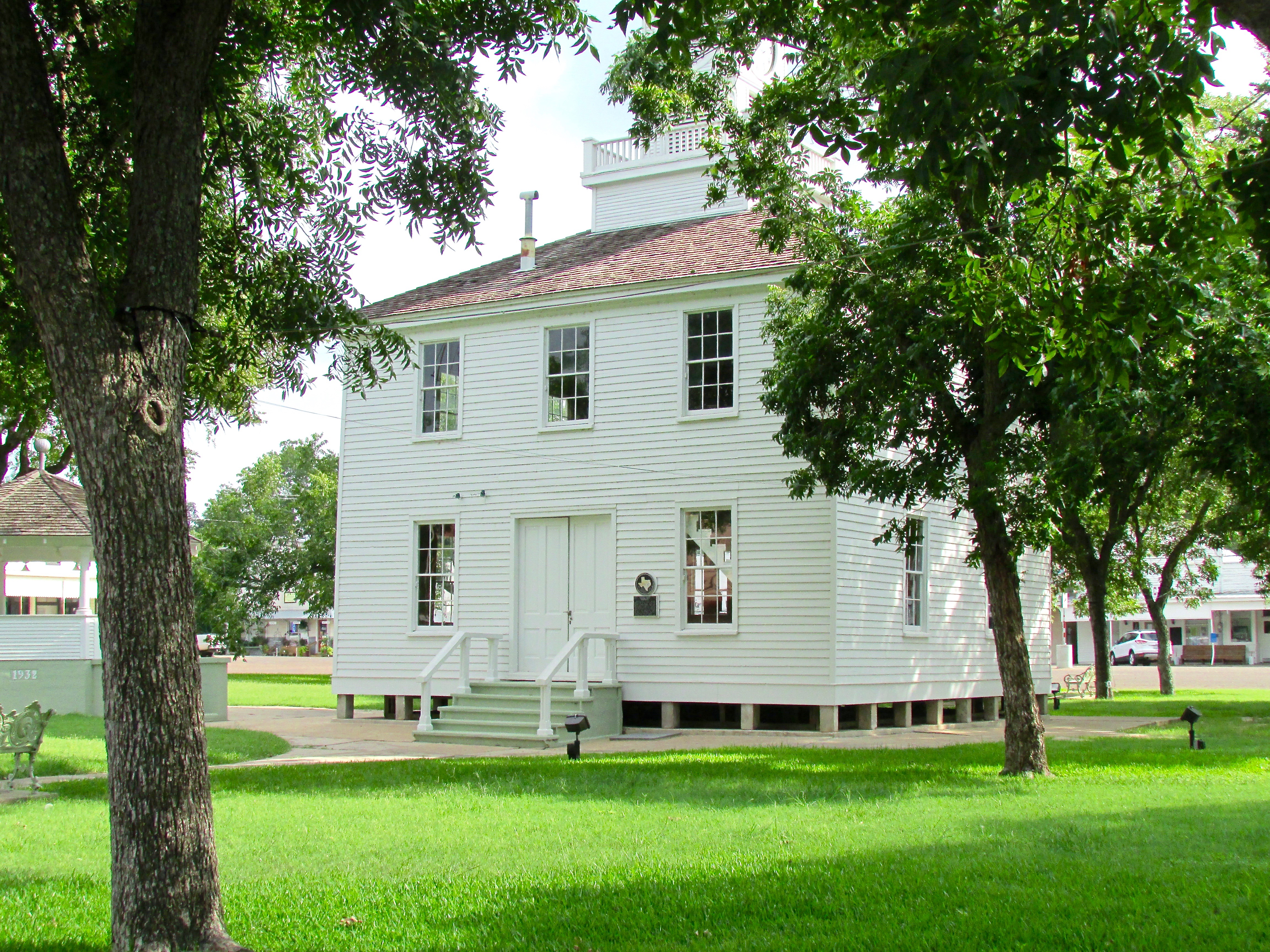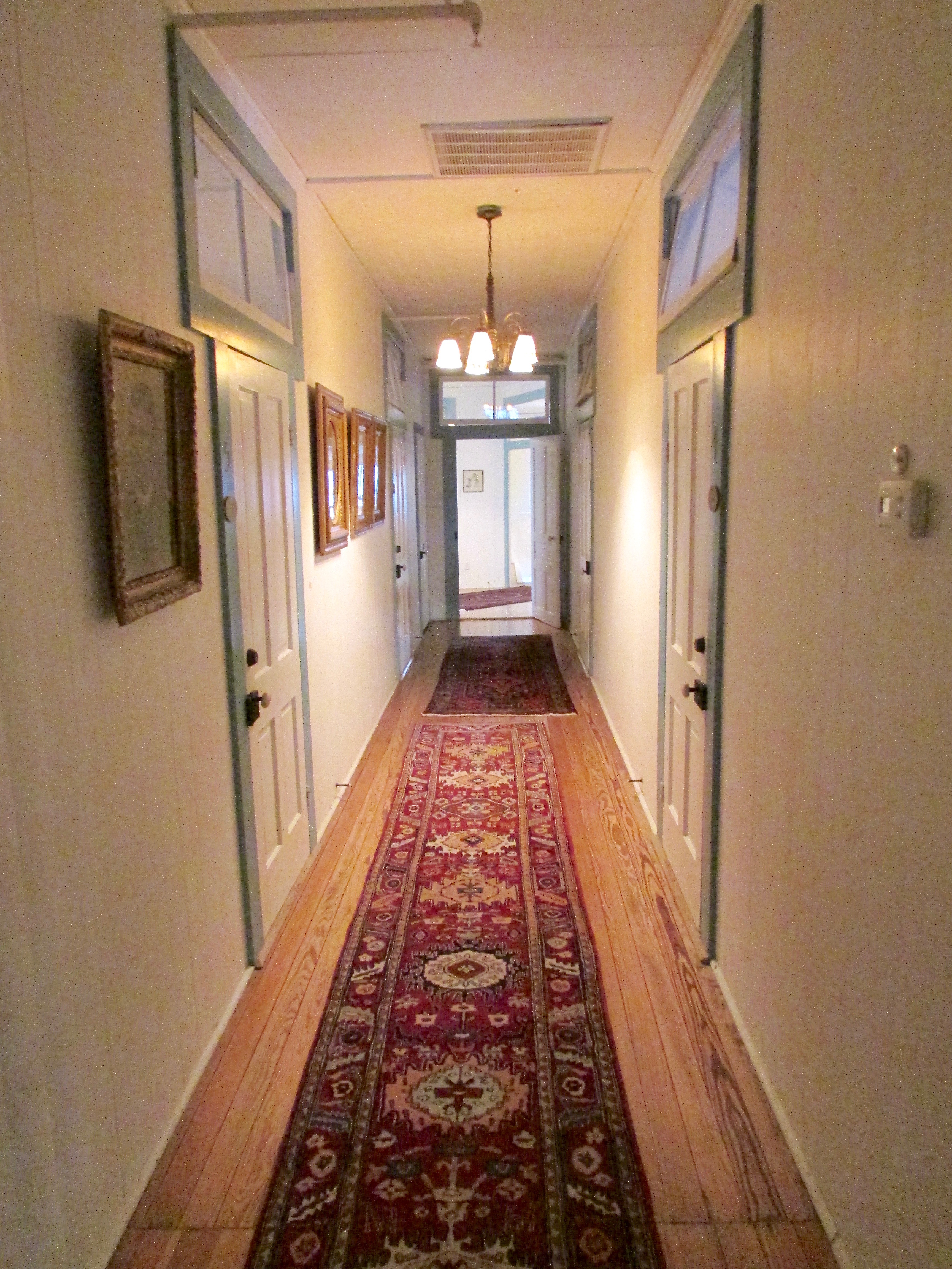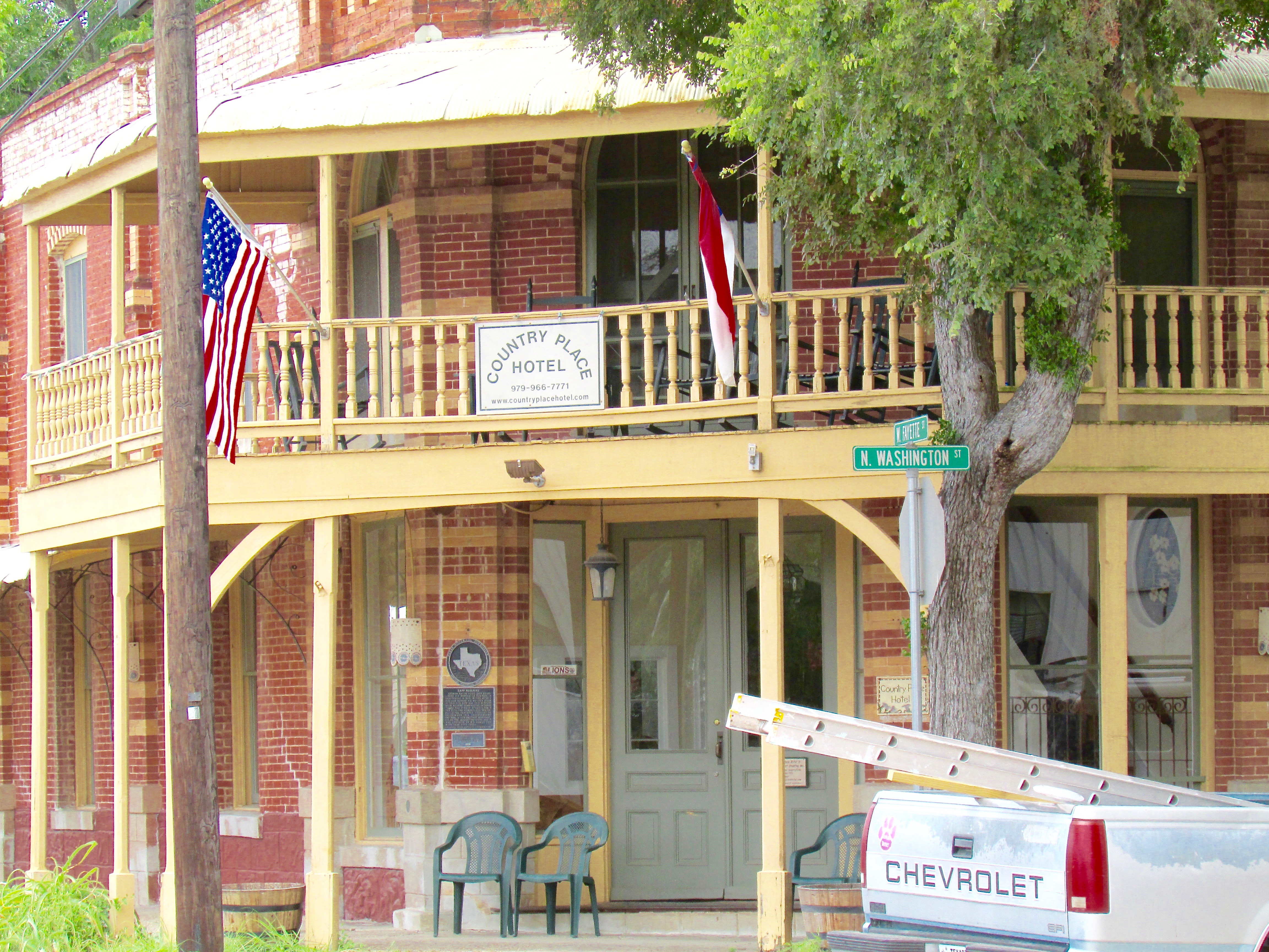 After lunch, we walked around. There were antique shops and art galleries and a small museum, but everything was closed except for the grocery store and the bank. We made a mental note not to visit again on a Monday and headed back to the car. That’s when we noticed the old hotel just across the street from the diner. It had an official Texas historical marker on the front. Lace curtains hung in the windows and a couple of green plastic chairs sat on the sidewalk. The door was locked, so we peaked through the windows. We could see someone was taking good care of the old place. We decided that next time we stopped in Fayetteville, we would call and see if we could take a tour.