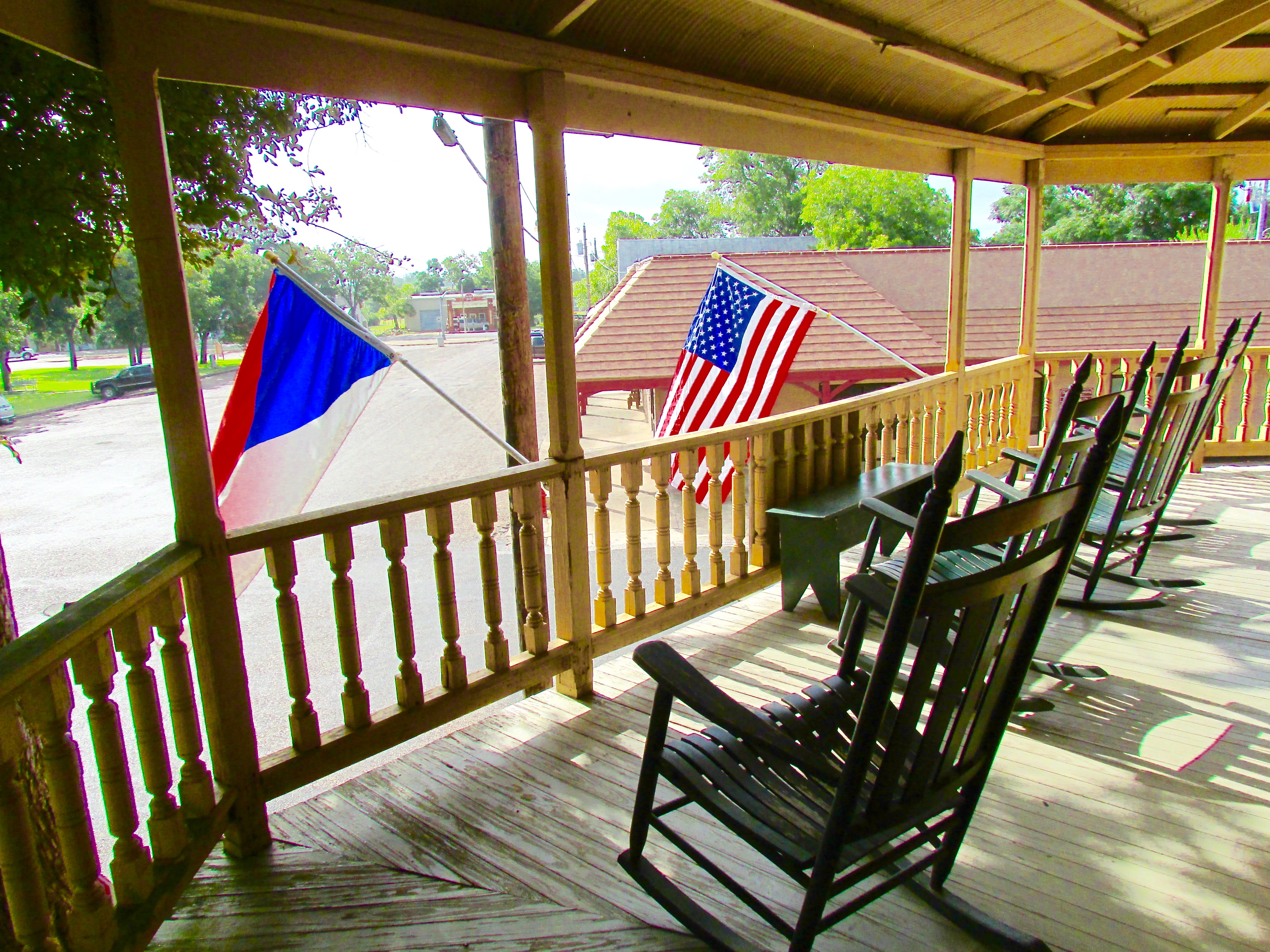 But we choose to visit Fayetteville when there isn’t much going on, just like the day we first stopped by. We enjoy sitting on the balcony of the Country Place Hotel watching the Czech flag fly beside the Stars and Stripes. We like seeing the little, white courthouse through the oak trees and listening to its chiming clock mark the hour.