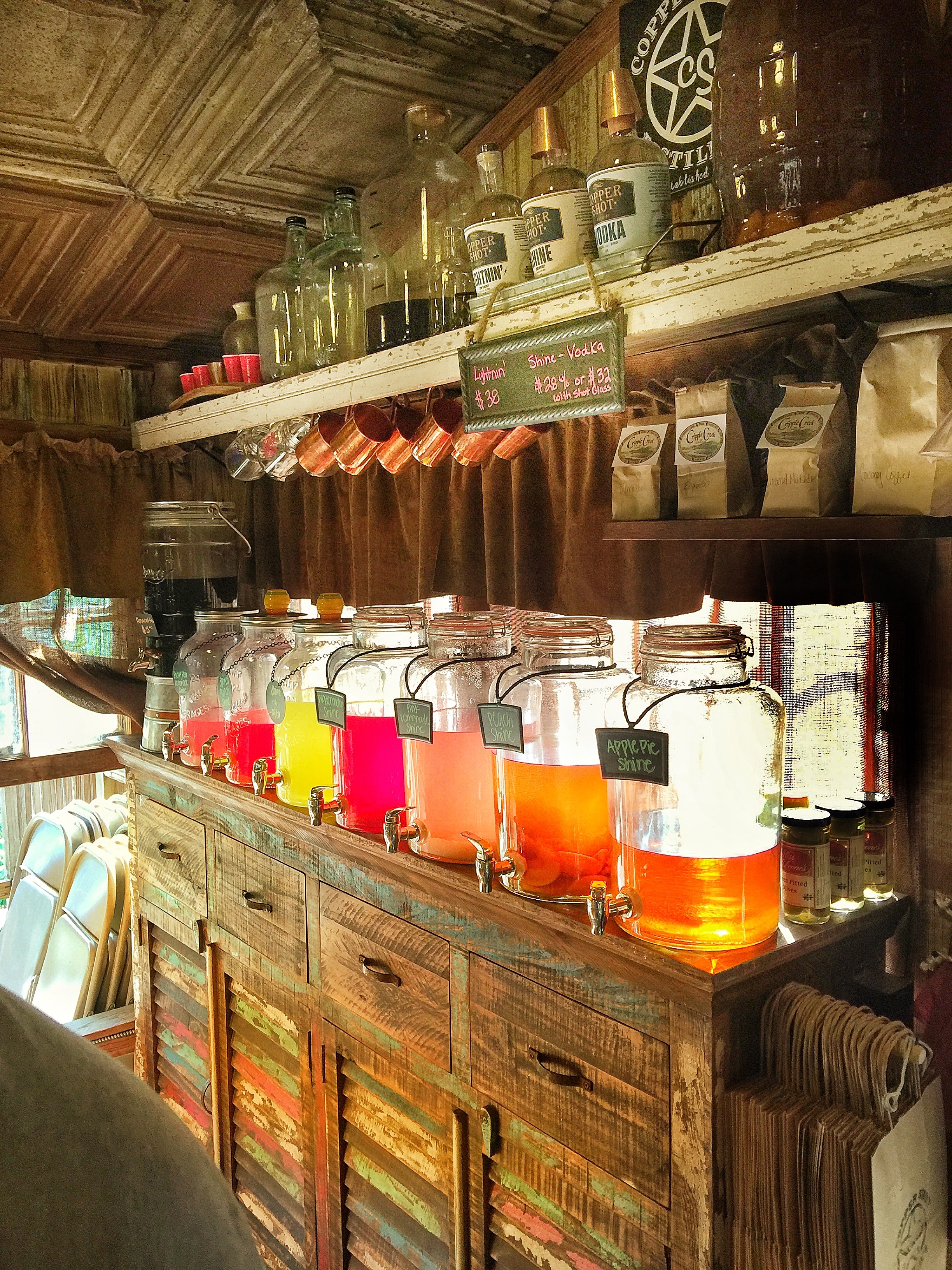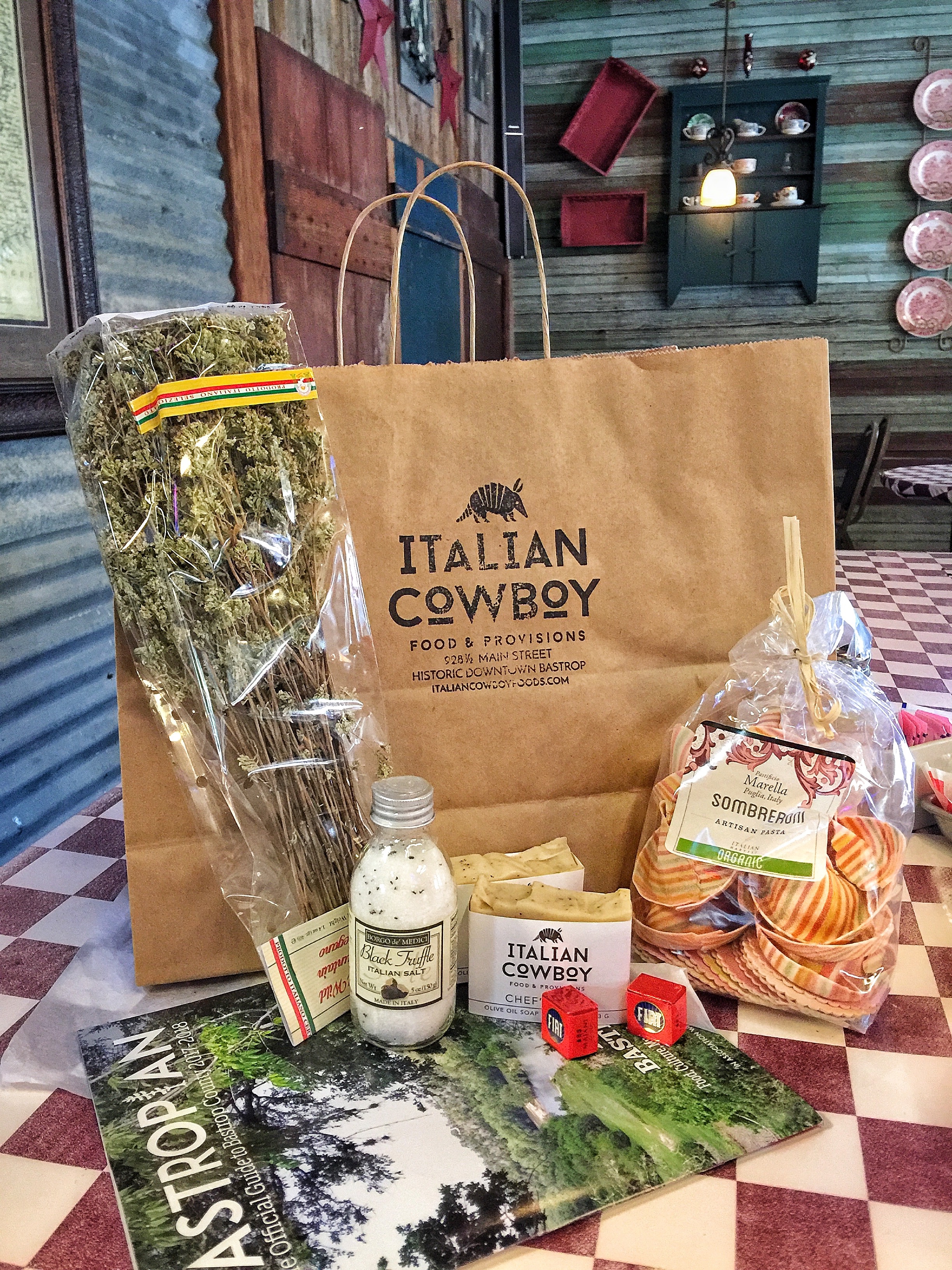 We also stopped by the Lost Pines Art Bazaar, a home-décor-gift boutique that is so chocked full of good stuff you should allocate major time to look around. Even if you are late for an appointment in Austin, we suggest you take the Bastrop exit and find this place. It’s just across the Colorado River Bridge. There is an added bonus — the Copper Shot Distillery is just steps away, so you too can sample rainwater shine.